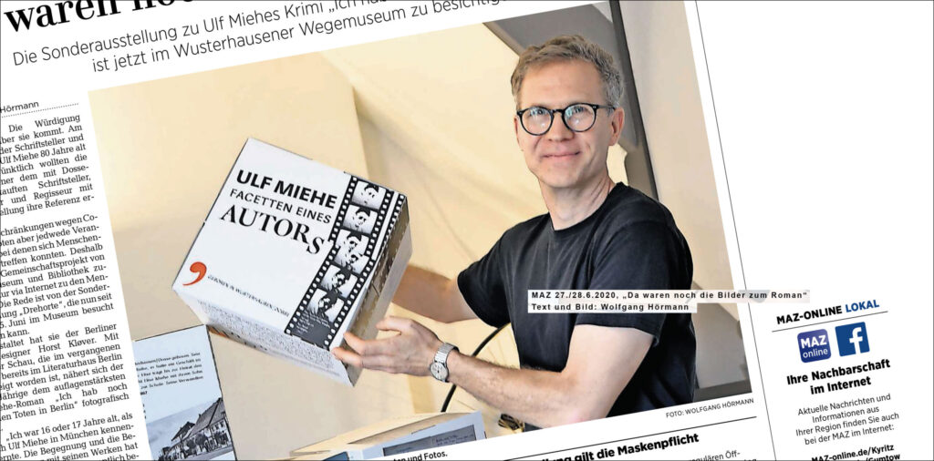In 2020, the exhibition moved on to the Ulf Miehe’s birthplace in Brandenburg. Together with the museum, I expanded the exhibition to include a “biography in fragments”, generously supported by Angelika Miehe. The result was a book with 82 pages. I was also responsible for the conversion of the material into exhibition cubes for the museum.
