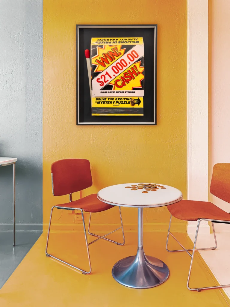 It all started with a bookmark. Years ago, when I was travelling through the Baltic states, I stayed in a small hotel in Tallinn that had a communal shelf for books – take one, leave one. I picked up a few well-worn paperbacks, but none of them really grabbed me. Then I found this weird edition of a horror story. Inside the book, there was a bookmark that was pretty unusual: it was a flat American matchbook, advertising a lottery with bright colours and bold typography. “Win $21,000.00 Cash!” it said. There was just one match left, folded down carefully. I usually can’t stand horror, but I started reading from the spot the matchbook marked. The story about a janitor in a high-rise haunted by ghosts was surprisingly well written. I don’t remember if the janitor survived in the end and the book stayed behind in Tallinn – but the matchbook-bookmark has travelled with me ever since, stashed in my travel wallet with my passport.
