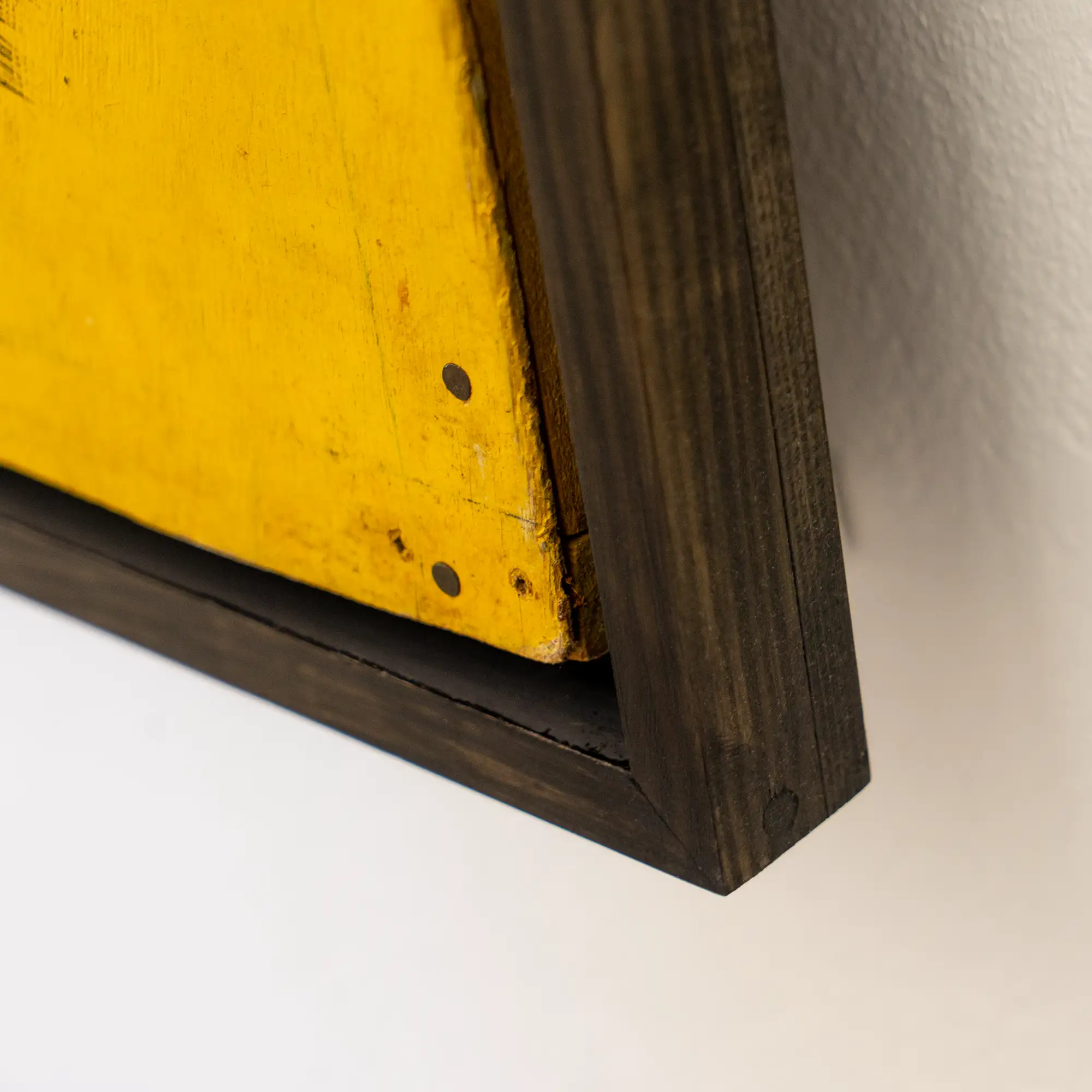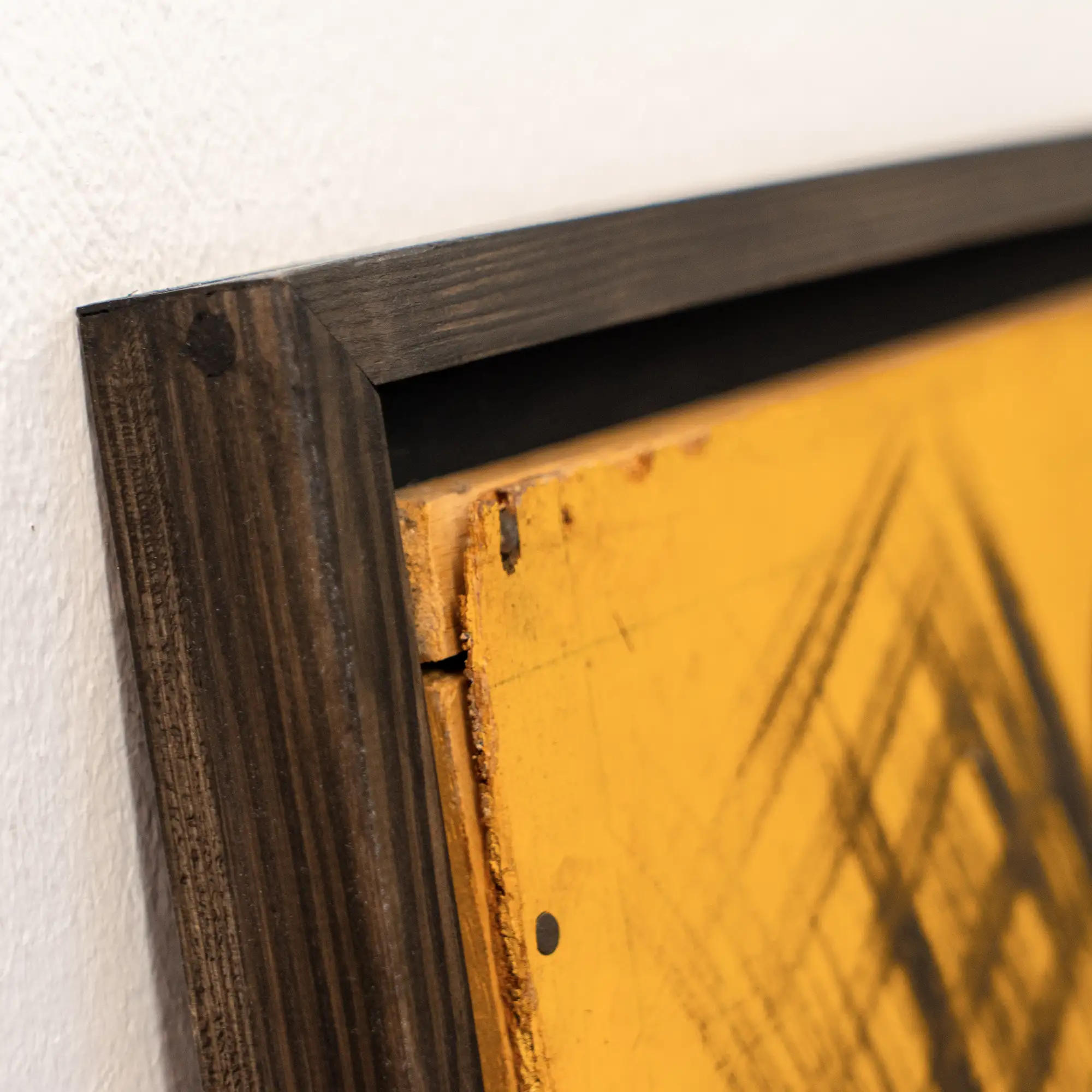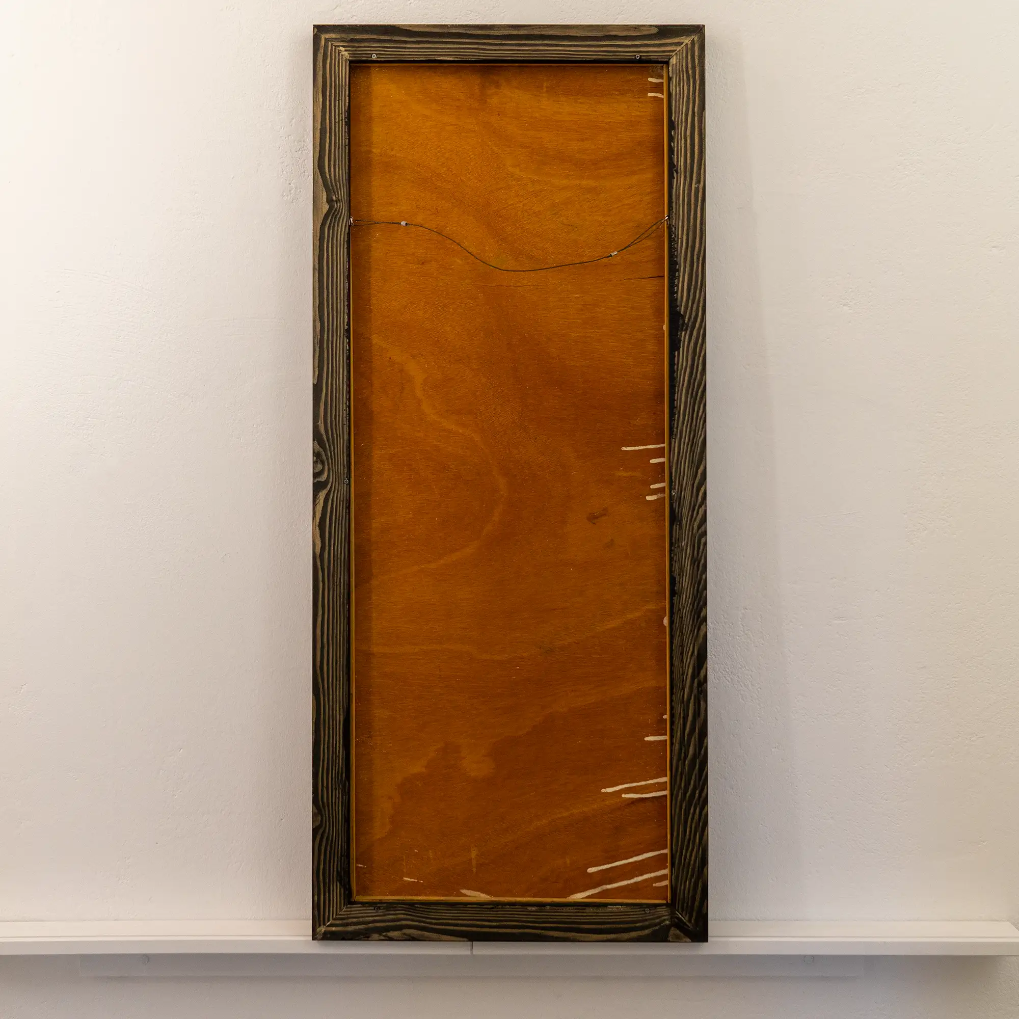 The painting measures 16.5 x 41.7 inches (42 x 106 cm), we mounted it into a shadowbox frame of 18.9 x 43.9 x 1.2 inches (48 x 111,5 x 3 cm), quite similar in style the other painting from Ghana we have.