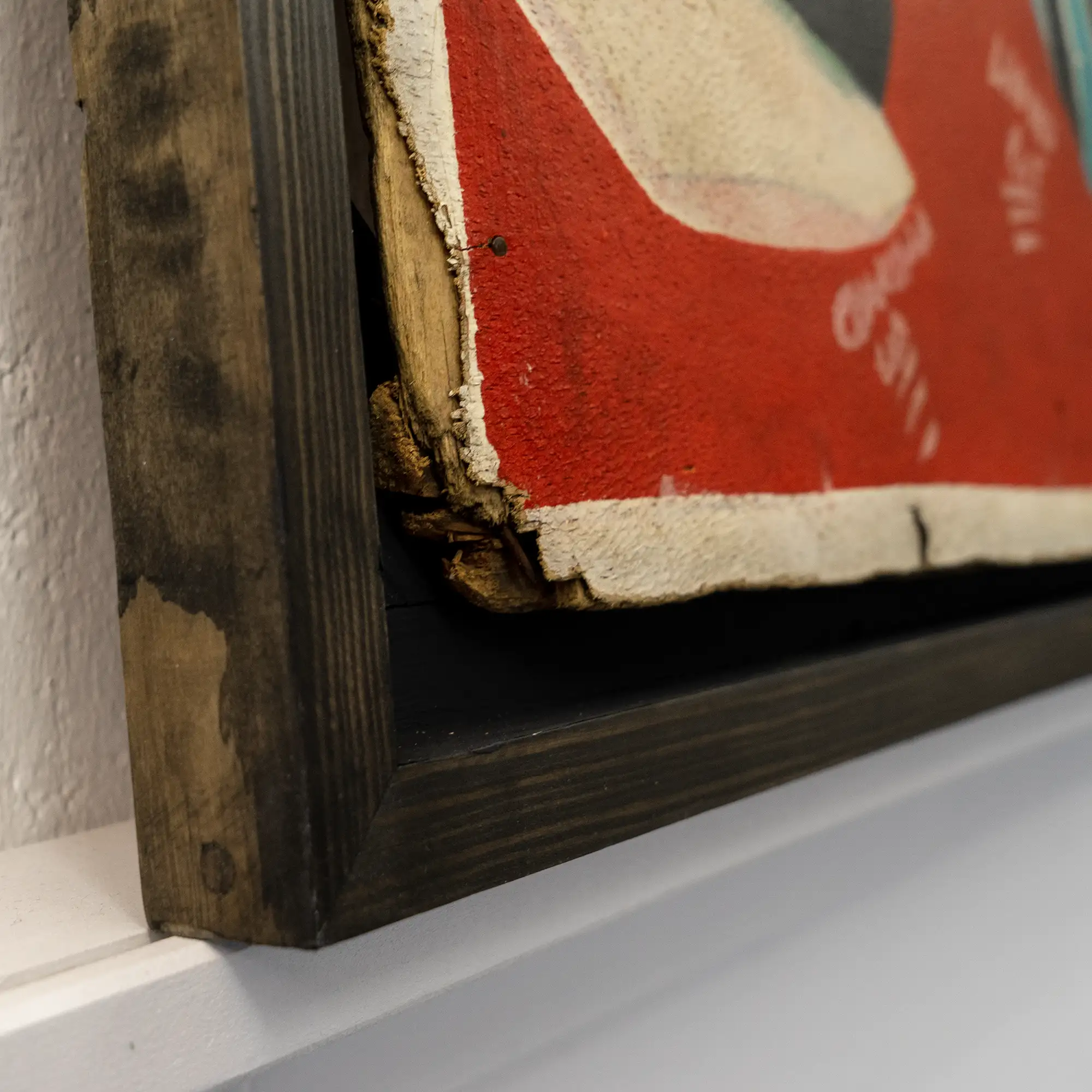 The painting measures 20.5 x 35.8 inches (52 x 91 cm), we mounted it into a shadowbox frame of 23 x 38.4 x 1.2 inches (58,5 x 97,5 x 3 cm).
