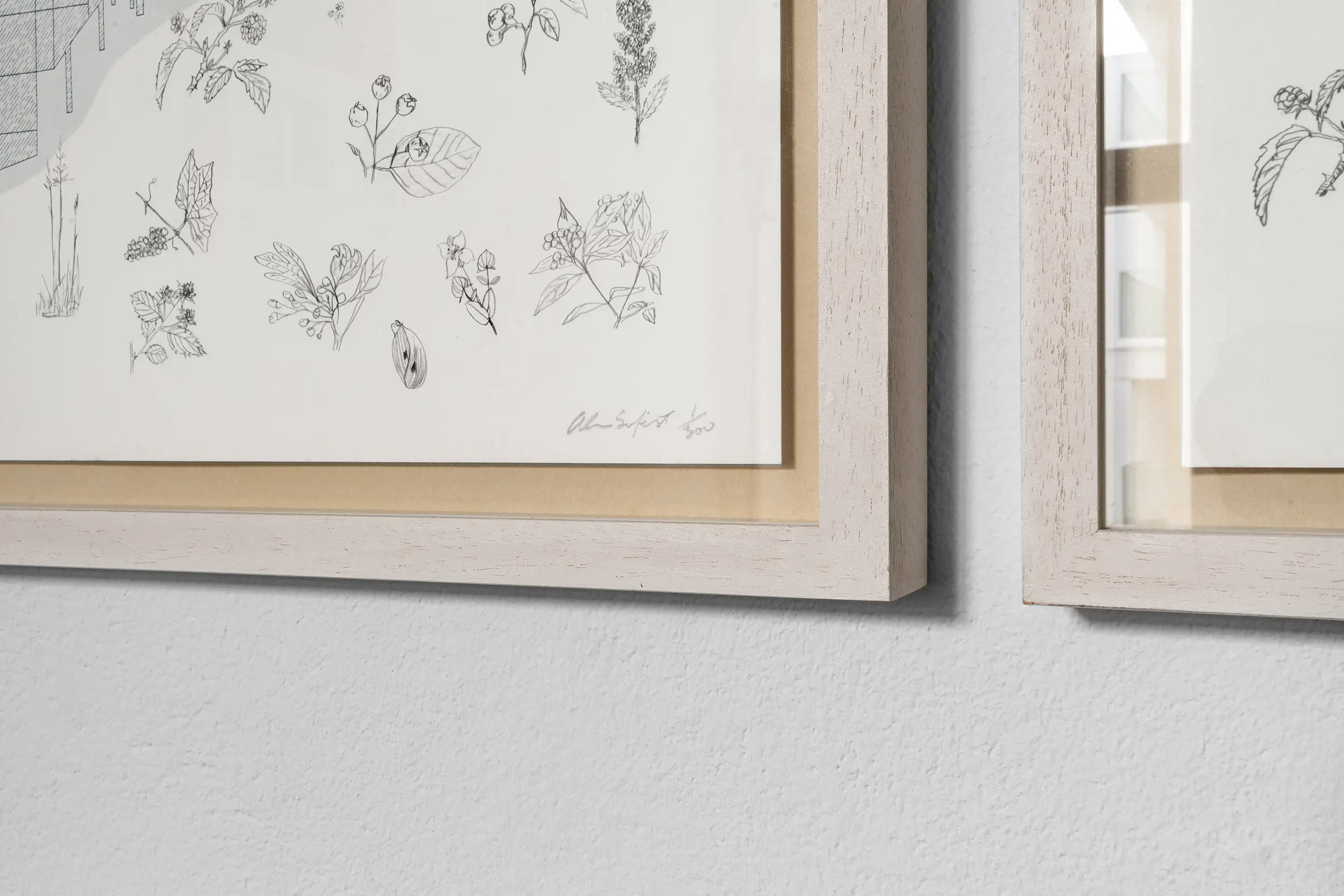 We have the set of three lithographic prints of the “Manhattan Trytich” from the year 1980 in two variations. The image and sheet size is 22 x 30 inches (55.88 x 76.2 cm) for both. Each is signed “Alan Sonfist” and numbered in pencil on the left print, the middle and right prints are unsigned. We have the editions 1/300 framed and 5/300 unframed in our collection.