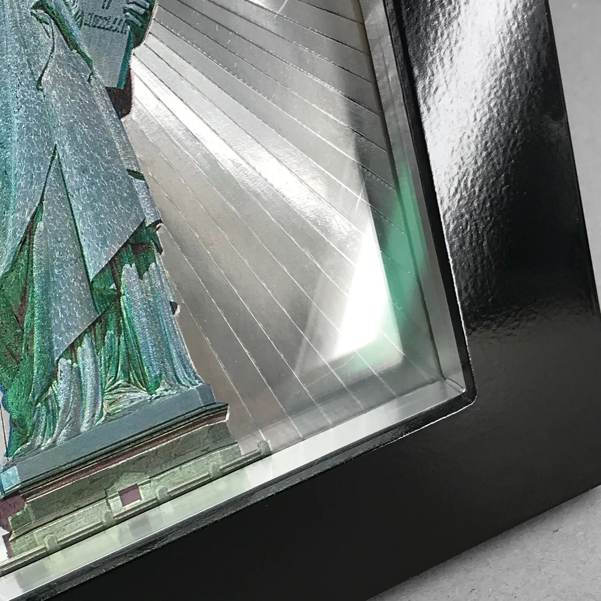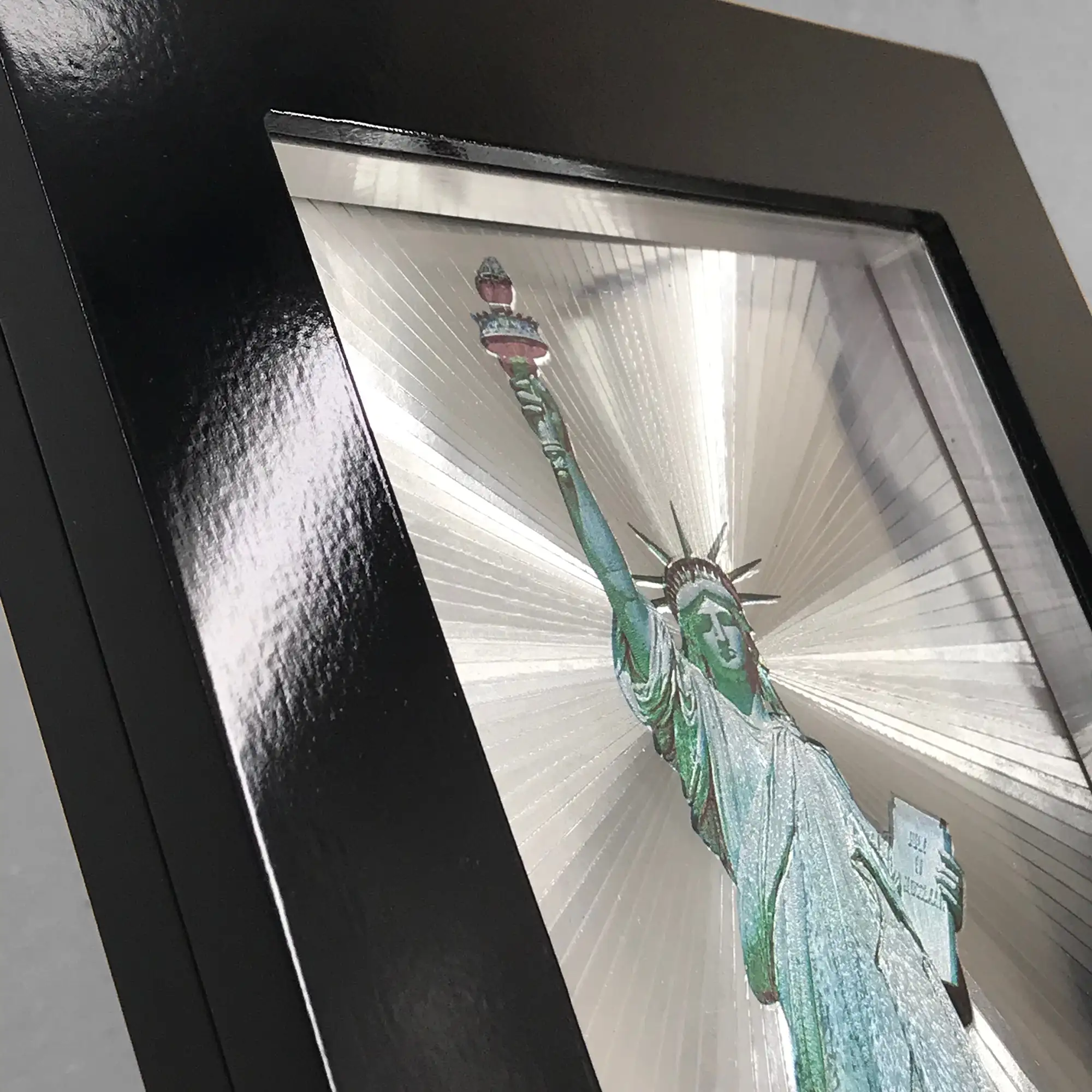 This print produced in the year 1989 (or later until 1997) in Hertfordshire (UK) is one of the very few remaining Dufex prints of quality. In the case of American baseball cards, which were produced under license in the elaborate Dufex process, the print run was around 3000. We do not know the edition of our Statue of Liberty, but we could not find any other examples online or in collectors’ forums.